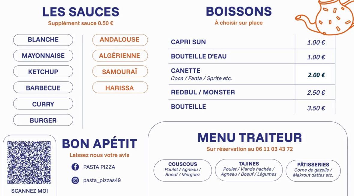 CALL +33621529363Situé dans la commune de Saint Georges Sur Loire, composée de près de 3500 habitants. Pasta Pizza, établissement de restauration rapide spécialisé dans la pizzéria et le snacking avec des produits frais, locaux et une fabrication artisanale. Depuis son ouverture en 2017, la pizzéria ne cesse de se diversifier et propose à sa clientèle un large choix de gamme de sandwichs et de pizzas. Toujours dans cet esprit d'accueil chaleureux et de satisfaction, nous nous efforçons de répondre au mieux aux attentes de notre clientèle diversifiée.